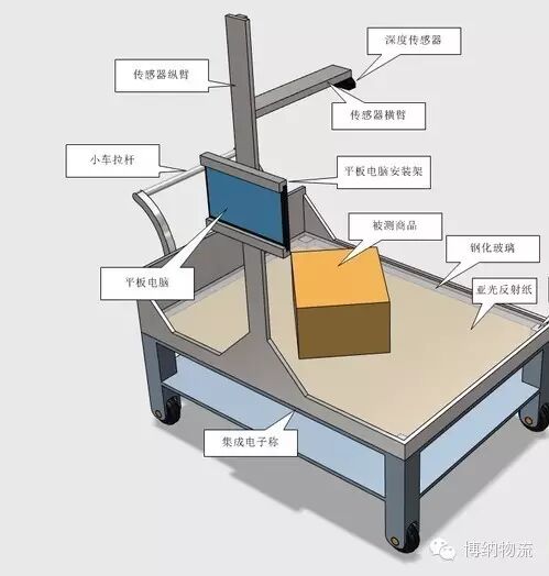 竖亥小车的工作原理为:当工作人员将仓储物品放置在竖亥小车上之后,通过扫码器率先进行扫码,录入产品信息,之后通过屏幕点击开始,顶部设置的深度传感器就可以对货物进行物流属性的采集,而RealSense强大的3D扫描功能可以帮助确定物流属性的结果。
